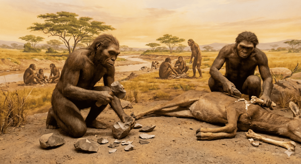 그렇다면 호모 하빌리스는 이 돌칼을 들고 매머드 같은 거대 동물을 사냥했을까요? 안타깝게도 초기 연구자들의 기대와 달리, 그들은 용맹한 사냥꾼보다는 ‘영리한 청소부(Scavenger)‘에 가까웠습니다.