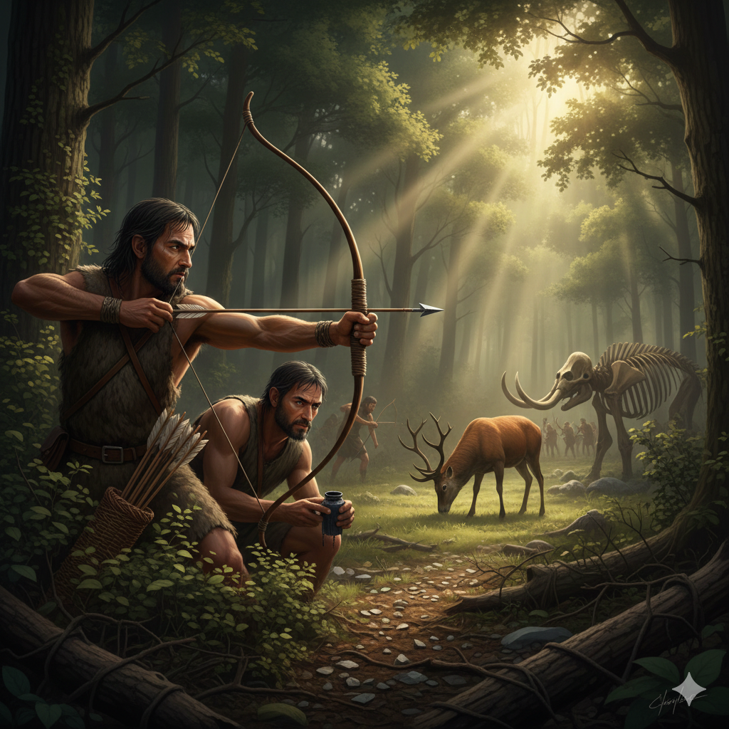 지난 시간, 우리는 빙하기가 끝나고 홀로세가 시작되면서 거대한 매머드가 사라졌다는 이야기를 나눴습니다. 탁 트인 초원은 빽빽한 숲으로 변했고, 그 숲속에는 몸집은 작지만 아주 재빠른 동물들(노루, 멧돼지, 토끼, 다람쥐)이 숨어 살기 시작했습니다. 이 변화는 사냥꾼들에게 큰 골칫거리였습니다. 육중한 창을 투창기로 던져서 저 작은 토끼를 맞춘다? 불가능에 가깝습니다. 게다가 숲속의 나무들은 창을 던질 공간조차 허락하지 않았습니다. 인류에게는 … 더 읽기